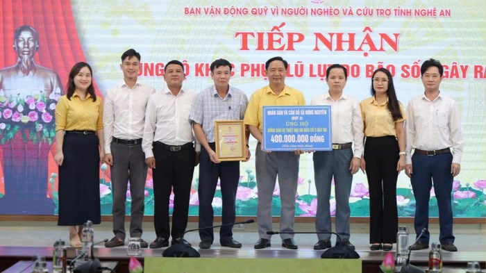 Chiều 19/8, Ủy ban MTTQ Việt Nam xã Hưng Nguyên đã tổ chức trao số tiền 400 triệu đồng tới Ban vận động cứu trợ tỉnh Nghệ An.