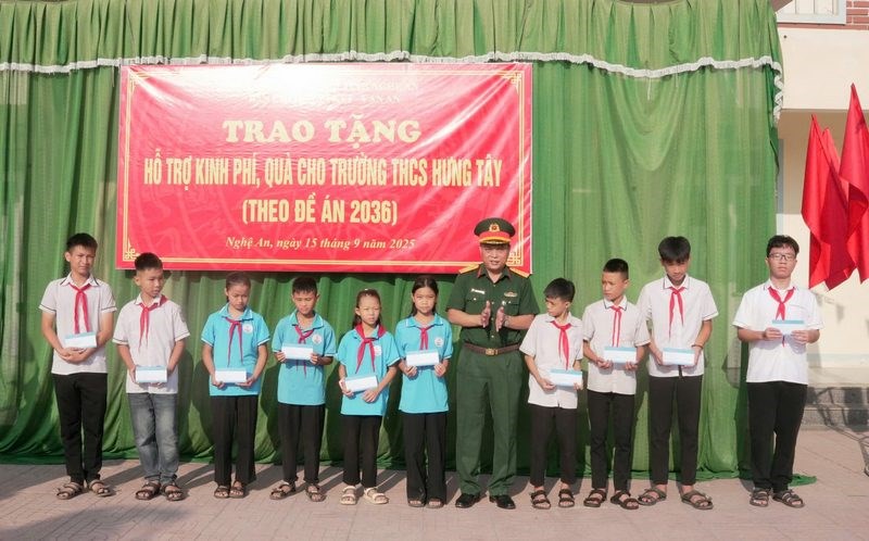 Sáng 15/9, thực hiện Đề án 2036 của Quân khu 4 về nâng cao hiệu quả công tác dân vận ở vùng đặc thù giai đoạn 2023 - 2030 và những năm tiếp theo, Ban Chỉ huy phòng thủ khu vực 1 - Vạn An phối hợp với cấp ủy, chính quyền xã Hưng Nguyên tổ chức trao quà cho Trường THCS Hưng Tây và học sinh có hoàn cảnh khó khăn trên địa bàn.