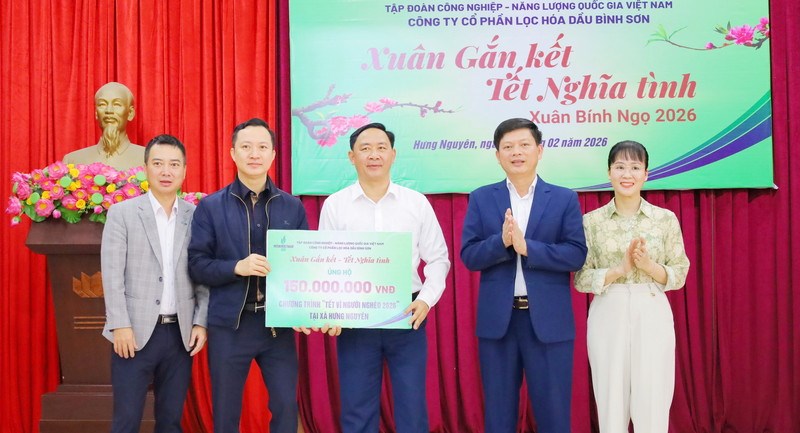 Sáng 7/2, Công ty CP Lọc hóa dầu Bình Sơn phối hợp với UBMTTQ Việt Nam xã Hưng Nguyên tổ chức trao quà Tết cho các hộ có hoàn cảnh đặc biệt khó khăn tại xã Hưng Nguyên.