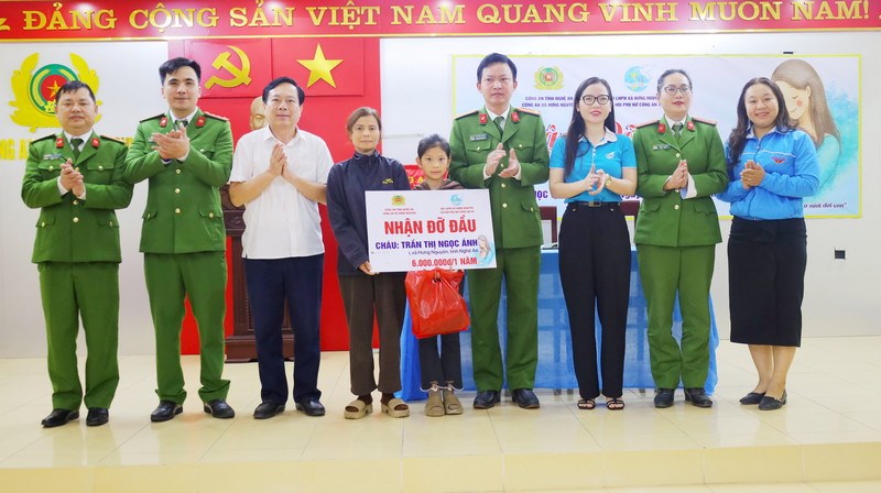 Sáng 7/2, Công an xã Hưng Nguyên, Hội phụ nữ Công an xã, Hội LHPN xã Hưng Nguyên phối hợp triển khai chương trình “Mẹ đỡ đầu- Kết nối yêu thương”, nhận đỡ đầu em Trần Thị Ngọc Ánh, học sinh lớp 4, Trường Tiểu học Nguyễn Thị Minh Khai, trú tại xóm Ngọc Điền.